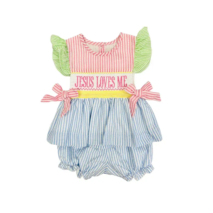Jesus Loves Me Smocked Bloomer Set